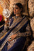 Maya is a heavenly shade of blue raw silk base, generously embroidered with gold tilla, gold sequins, and threads. The A-line long shirt is paired with culottes. The front features scalloped border details and a heavily embroidered neckline. A gorgeous motif is carefully placed on the back. The chiffon dupatta is composed using embroidered details of tilla, resham, and sequins.